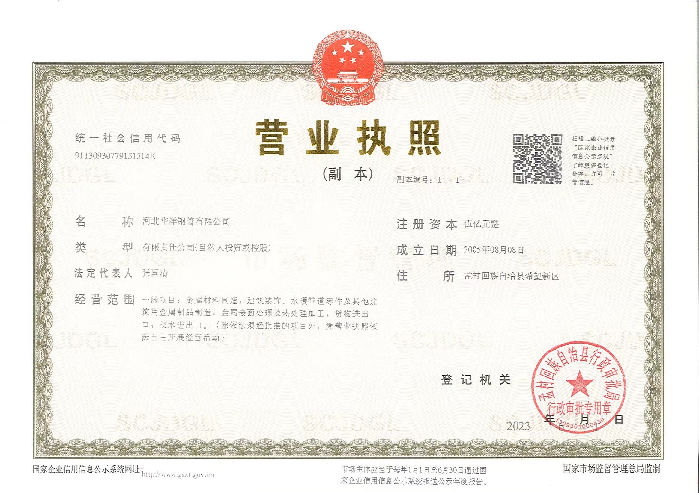 河北華洋鋼管有限公司公司創(chuàng)建于2005年,注冊(cè)資金5億元,公司占地面積1000余畝,固定資產(chǎn)12億元,年銷售收入近100億元,現(xiàn)有員工600余人。“華洋牌"高頻直焊鋼管被評(píng)為“河北省名牌產(chǎn)品”,年生產(chǎn)能力可達(dá)260萬噸,2024年河北華洋鋼管有限公司榮獲河北省百?gòu)?qiáng)民營(yíng)企業(yè)(69位),河北省百?gòu)?qiáng)制造業(yè)(57位)榮譽(yù)稱號(hào)。
