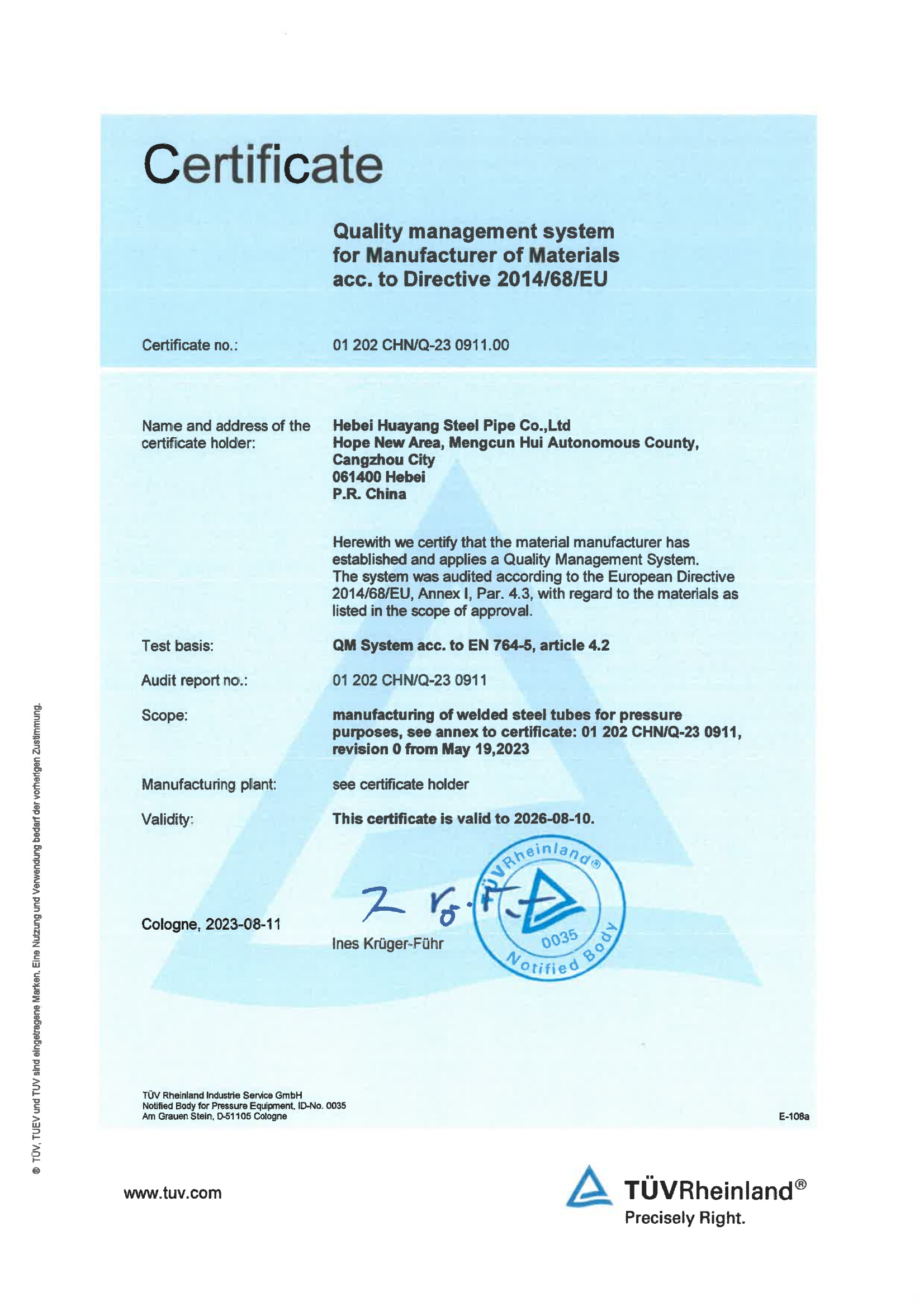 公司現(xiàn)有17條新型的自動(dòng)化鋼管生產(chǎn)線,包括Φ73-660.4高頻直縫焊鋼管生產(chǎn)線14條、Φ406.4-Φ1422.4直縫雙面埋弧焊鋼管生產(chǎn)線3條,并配備有一條防腐生產(chǎn)線,可進(jìn)行3PE、2PE、FBE、2PP、3PP防腐處理,同時(shí)還可提供鋼管深加工服務(wù)。公司擁有先進(jìn)的理化實(shí)驗(yàn)室,可承擔(dān)鋼管的各項(xiàng)物理及化學(xué)檢測(cè)與試驗(yàn)。公司先后取得了ISO9001質(zhì)量管理體系認(rèn)證、ISO14001環(huán)境管理體系認(rèn)證、ISO45001職業(yè)健康安全管理體系認(rèn)證、特種設(shè)備制造許可證、API5L和API2B認(rèn)證證書、歐盟CE認(rèn)證、俄羅斯GOST認(rèn)證、中海油入網(wǎng)證、安全生產(chǎn)標(biāo)準(zhǔn)化二級(jí)企業(yè)等標(biāo)準(zhǔn)質(zhì)量體系認(rèn)證。